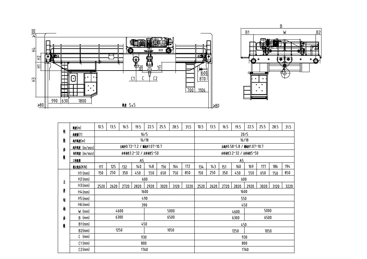 1、 自重輕、輪壓小、限界尺寸小、性能可靠、操作方便的起重設(shè)備,是各種物料搬運場所的機型。